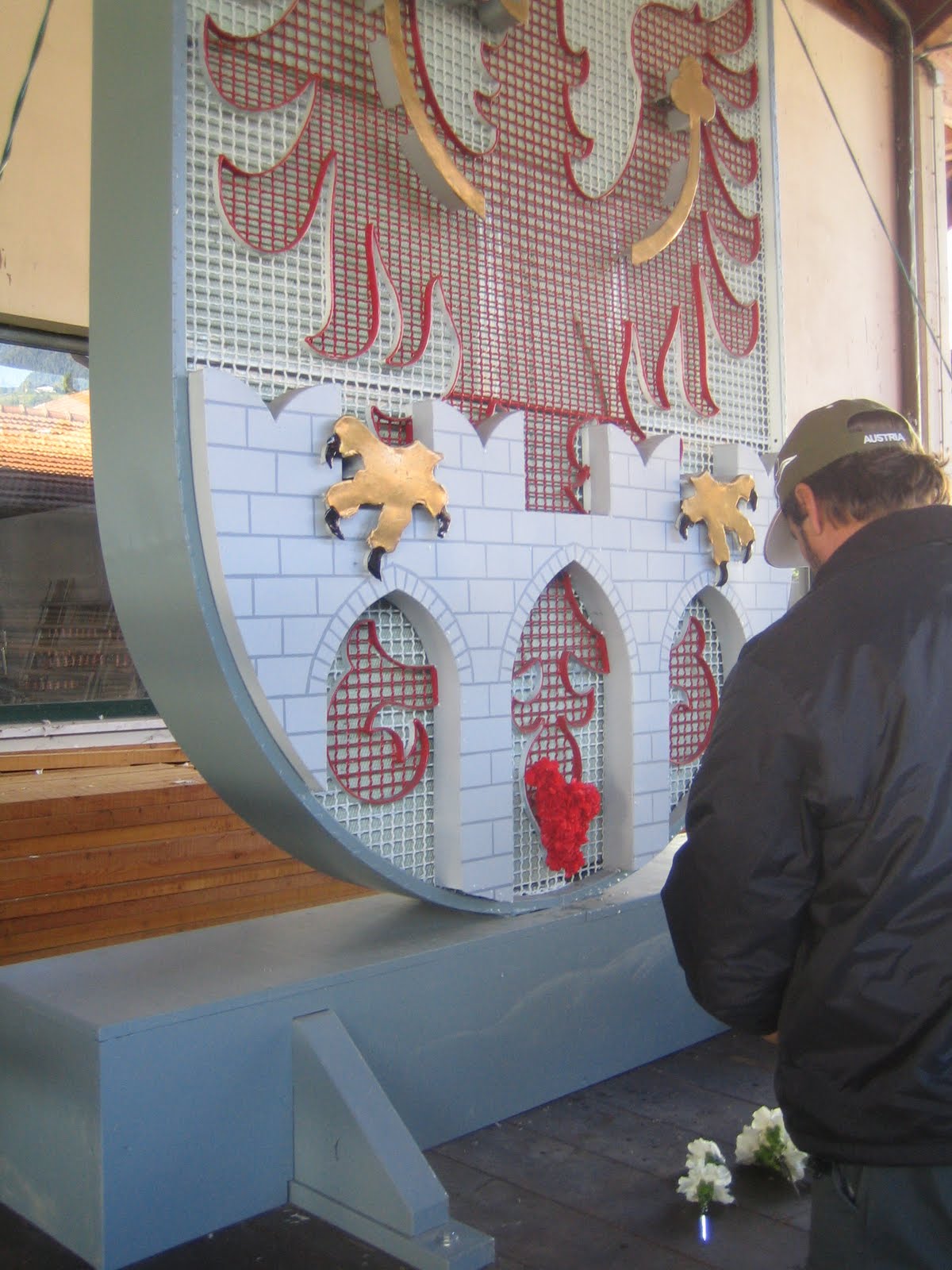 Municipal plant nursery Merano and the gardeners showed us how they prepare the red and white carnations they fix on the eagle (the emblem of Merano). The eagle is in the domicile of the department for Municipal authority streets and infrastrutures, awaiting to be prepared for Sunday 🙂