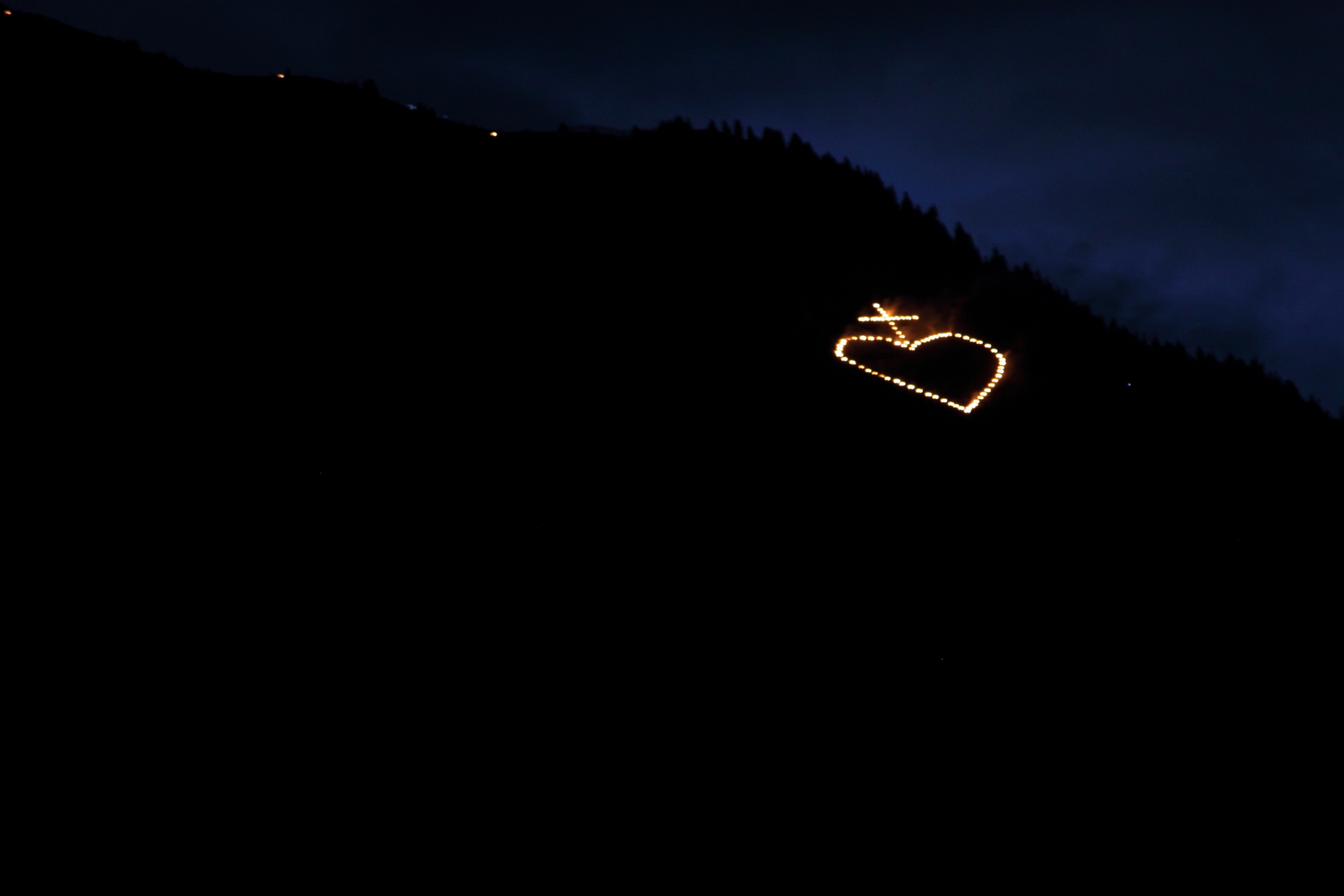 The third Sunday after Pentecost diligent people, from firefighters to members of different associations go up to the mountains and create hearts, crosses and dots with fire. The Sacred Heart is a devotion to Jesus’ heart very dear to the South Tyrolean people. We went up to Marlengo-Marling to a natural terrace to have the perfect place where we could take pictures of this special night.