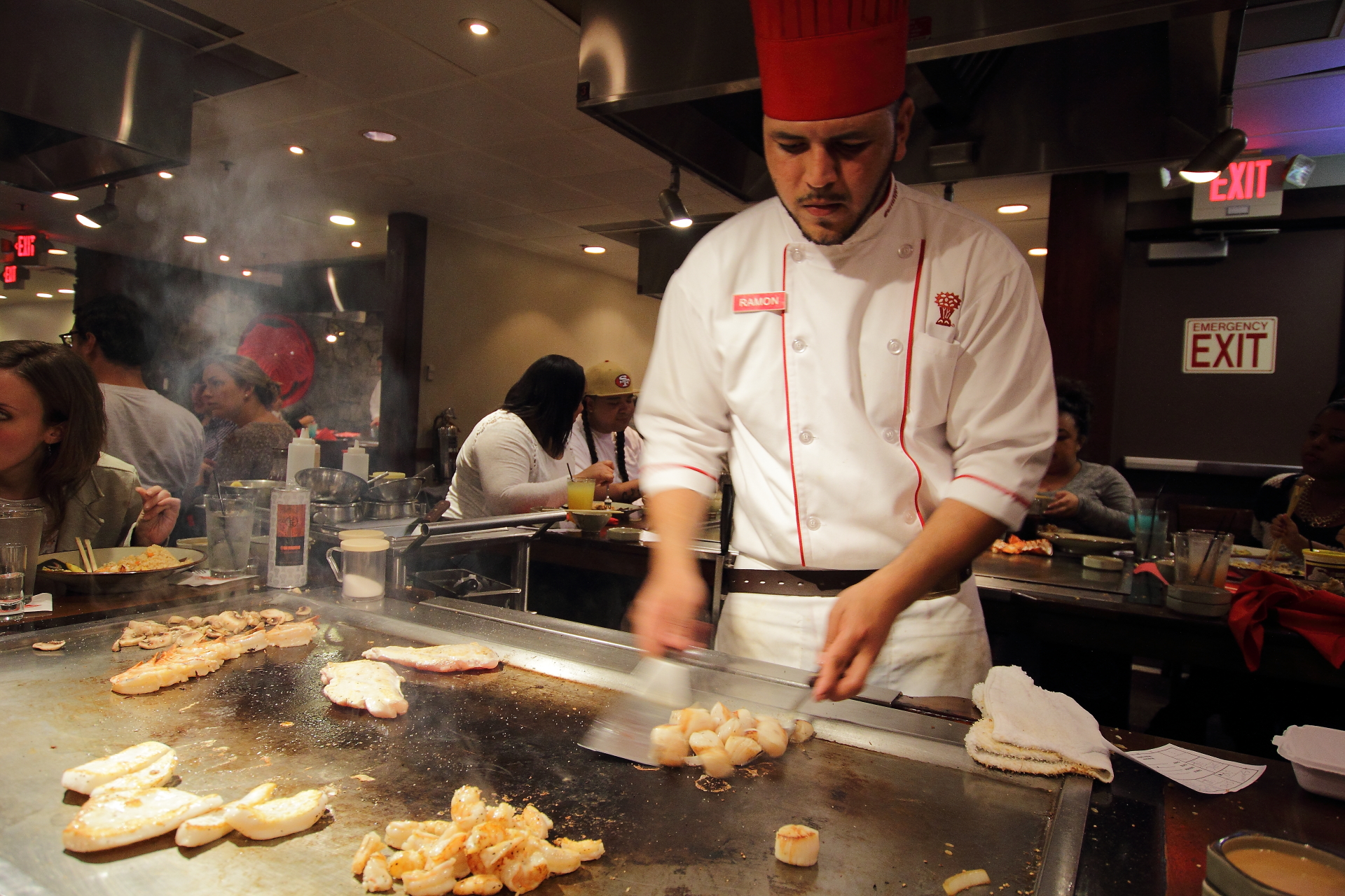 Un altro posto speciale è stato il ristorante giapponese Benihana. In principio ero scettica, perché non sono un amante del sushi e ho dovuto ammettere la mia ignoranza nel credere che i giapponesi mangiassero soltanto pesce crudo. Il posto in cui ci hanno portati presenta tutta una serie di tavoli che circondano una piastra gigante sulla quale dei cuochi e “spadaccini” provetti cucinano al momento ciò che si sceglie dal menù, carne o pesce che sia. Non è soltanto delizioso, è anche spettacolare assistere allo spettacolo offerto dal cuoco che armeggia con disinvoltura e rapidità i coltelli molto affilati.